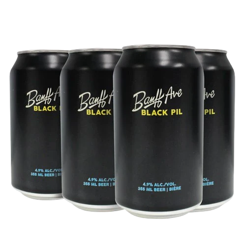 Banff Ave Brewing Co. Black Pil is a Black Pilsner with an ABV of 4.9% and an IBU of 24. This local favorite offers rich tasting notes of chocolate and coffee, making it a smooth and satisfying beer. It pairs excellently with hearty dishes such as stew, late-night shawarma, chocolate desserts, and BBQ favorites.