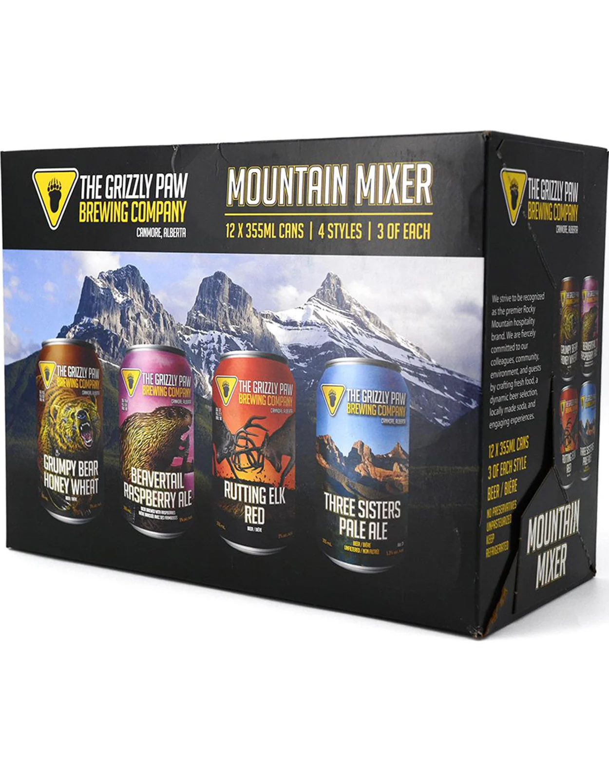 Not sure which Grizzly Paw brew to try? The Mountain Mixer is the perfect solution! This 12-pack offers a selection of four distinct beers, providing something for every taste. Whether you enjoy smooth wheat ales, refreshing fruit-forward brews, rich malty flavors, or a crisp and easy-drinking IPA, this pack has it all.